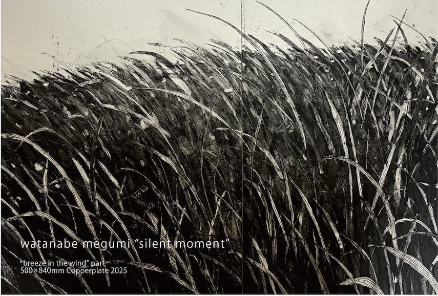 日常の中でふと起こる、風や雨、木々のざわめきで音が一瞬無くなる感覚、「静かな時間」 を感じていただけたら幸いです。