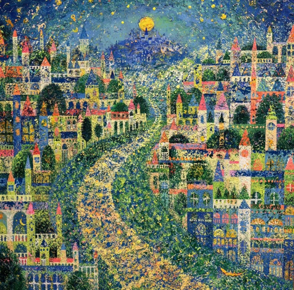 キャンバスに色を塗ってじっと見つめていると、そこから不思議と浮かび上がってくる景色をひろっています。絵画一枚一枚が地図となり、一つの王国となる。